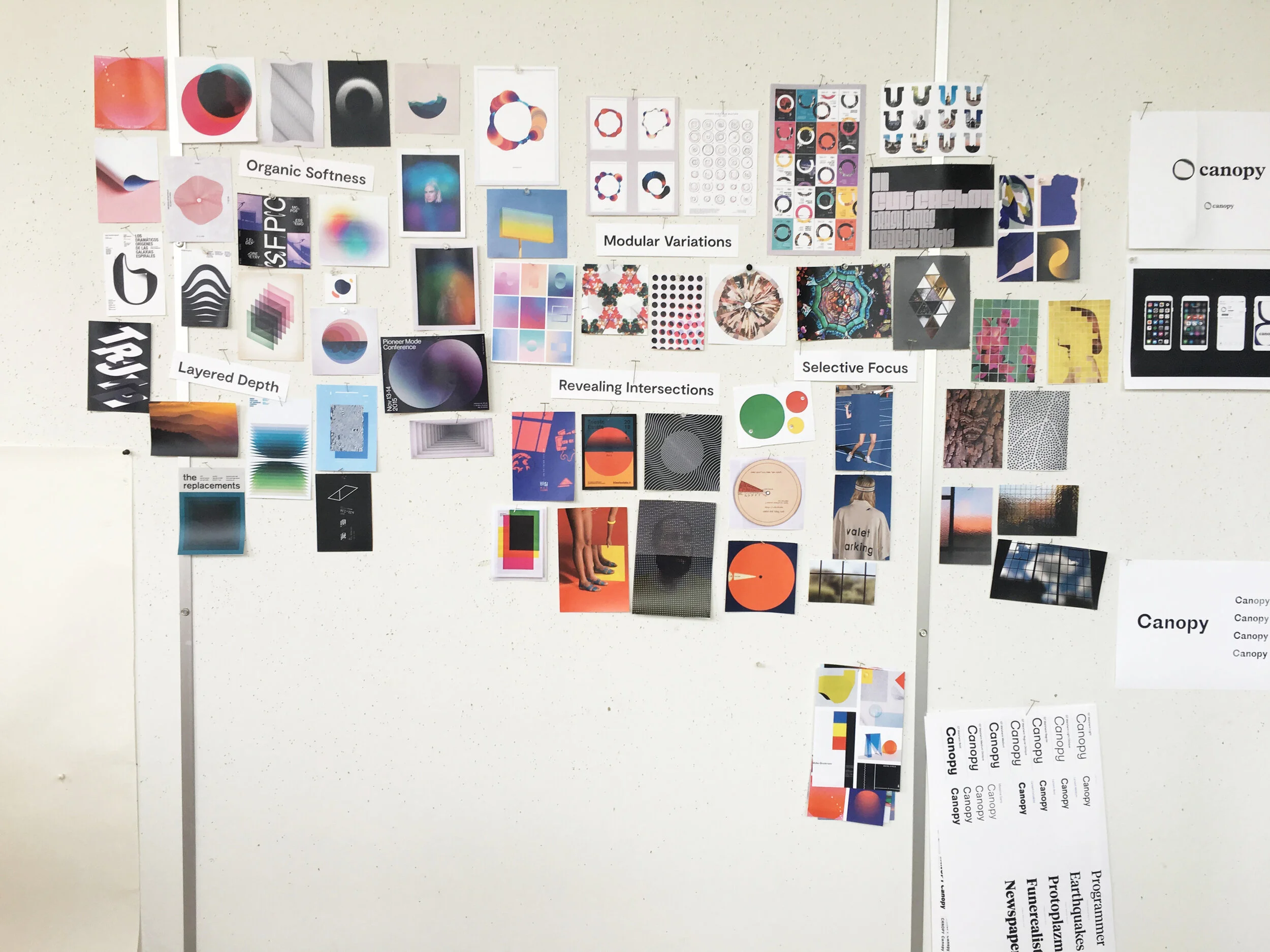 For inspiration, we gathered a moodboard of elements grouped into the following categories: organic softness, unexpected textures, modular variations, selective focus, and revealing intersections. To achieve a logo with these qualities, we designated a day to free form hand painting. Using watercolors, inks, and dyes, we discovered new forms that captured the combination of elements we were in search of.